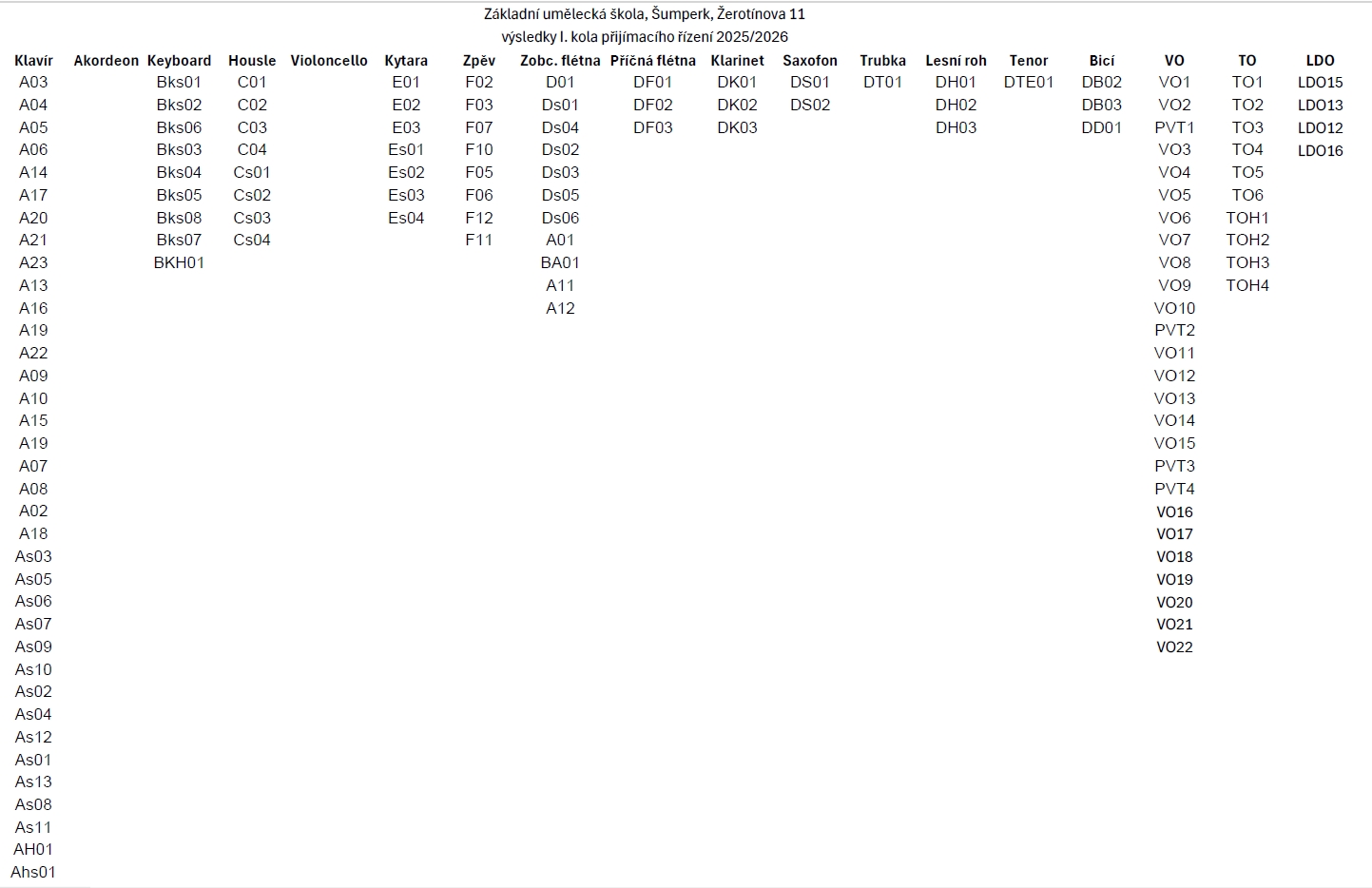 Výsledky I. kola přijímacího řízení - školní rok 2025/2026