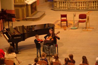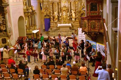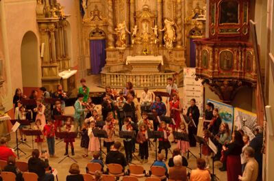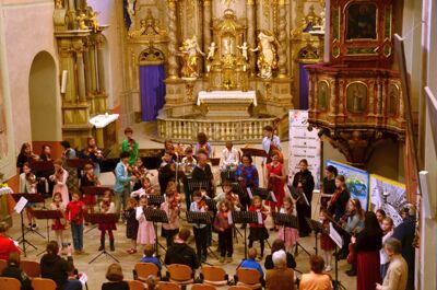 Mimořádný hudební zážitek čekal posluchače v sobotu 7. března 2026. V Kostele Zvěstování Panny Marie se uskutečnil koncert šedesáti mladých houslistů, který propojil hudbu, pedagogiku i výtvarné umění.