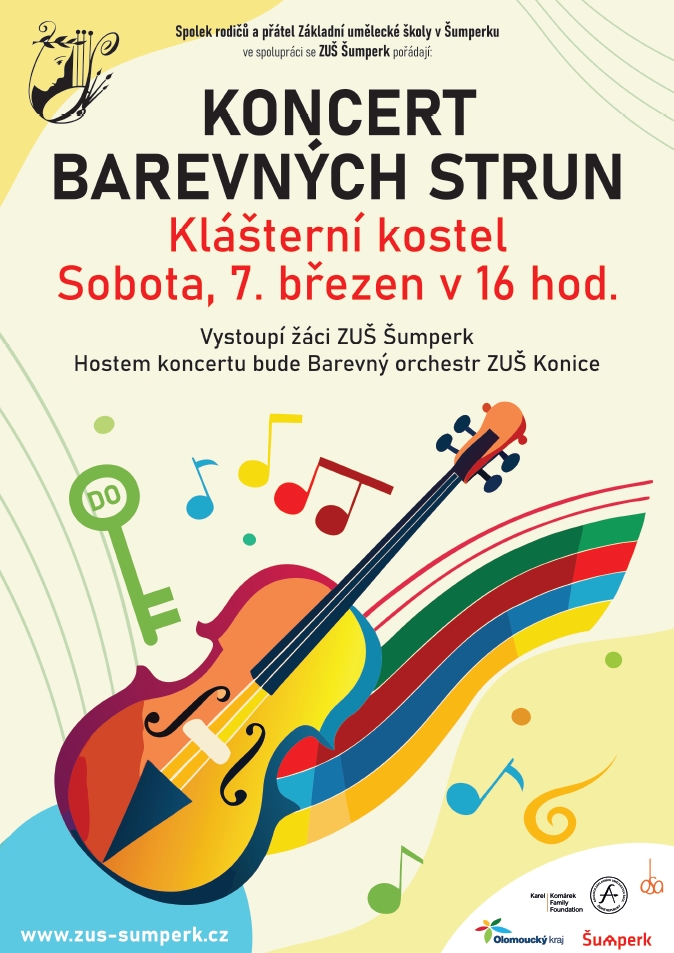Na pódiu se představí žáci Lenky Nečasové, Edity Procházkové a Antonína Mináře, klavírní doprovod zajistí Petra Minářová. O výtvarnou podobu koncertu se postarali žáci ze tříd Hany Němcové a Soni Krtičkové, kteří vytvořili scénické kulisy. Hostem odpoledne bude Barevný orchestr ZUŠ Konice pod vedením Jitky Kaprálové Šeluďkové. Programem provede Hana Johnová.