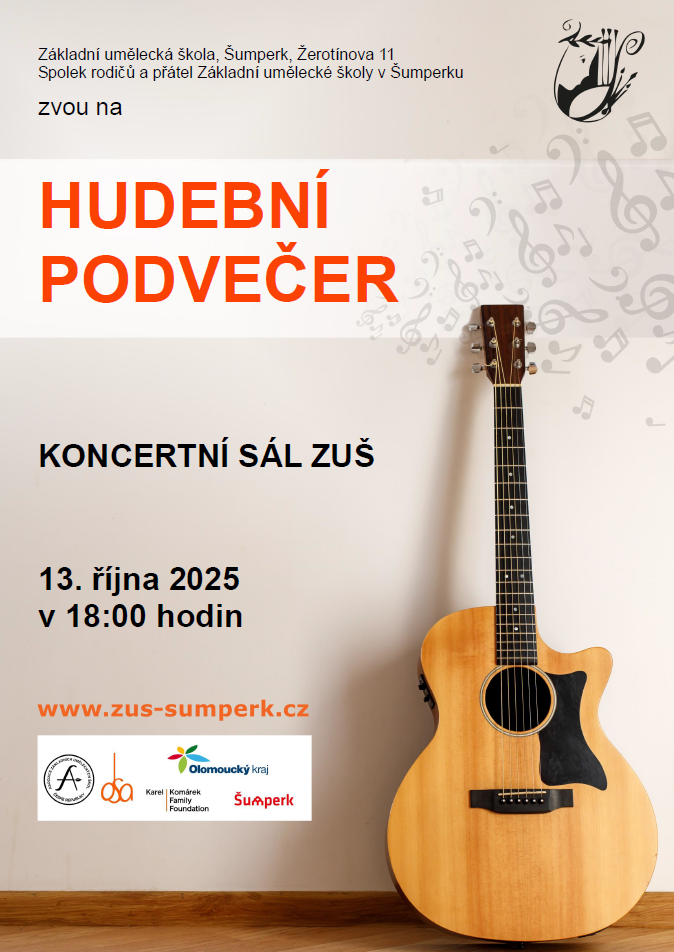 V pondělí 13. října se od 18:00 v koncertním sále ZUŠ představí žáci hudebního oboru na tradičním hudebním podvečeru. Srdečně všechny zveme.