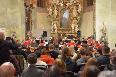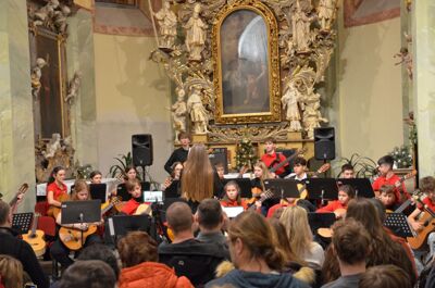 Koncert kytarového orchestruV pondělí 15. prosince se v klášterním kostele představil kytarový orchestr pod vedením p. uč. Elišky Strachotové.