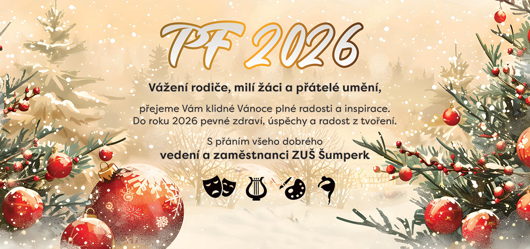 dovolte, abychom Vám jménem vedení školy poděkovali za spolupráci v uplynulém roce a do roku nového Vám popřáli hlavně hodně zdraví, spokojenosti, úspěchů a zároveň také prožití klidných a šťastných vánočních svátků. Ať spokojenost a štěstí jsou po celý nadcházející rok 2026 nablízku Vám všem. Těšíme se na další společná setkávání a spolupráci.