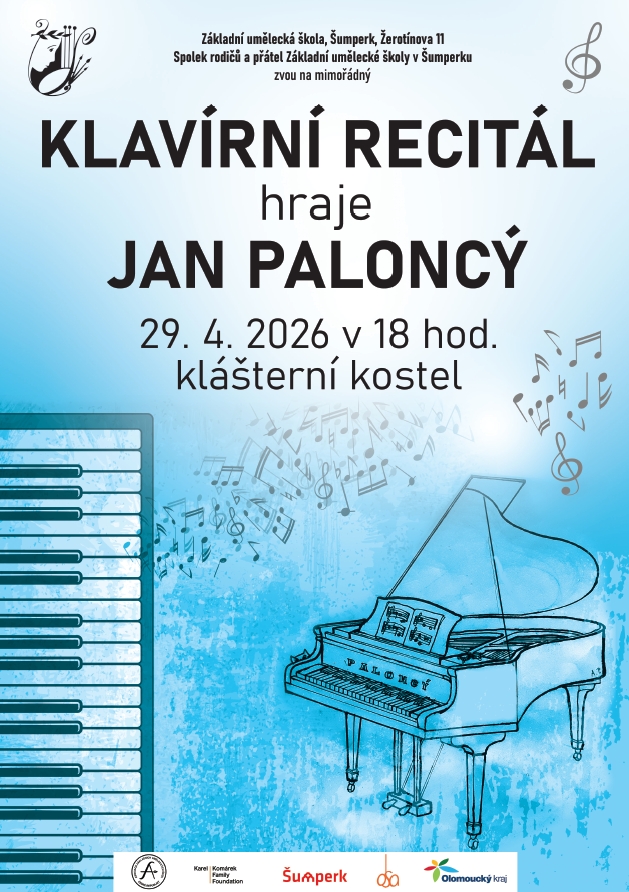 Recitál Jana PaloncýRecitál Jana Paloncý, absolventa z klavírní třídy Jany Valentové, si budete moci užít ve středu 29. dubna od 18:00 v klášterním kostele. Srdečně všechny zveme na tento mimořádný zážitek.