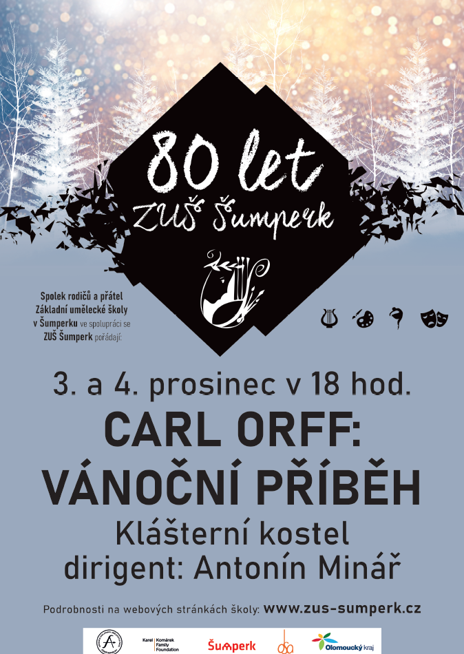 Při příležitosti 80. výročí založení Základní umělecké školy Šumperk se odehrají dvě celoškolní představení Carl Orff: Vánoční příběh, která se uskuteční 3. a 4. prosince od 18:00 v klášterním kostele v Šumperku. Vstupenky jsou v prodeji pouze na pokladně Domu kultury Šumperk.